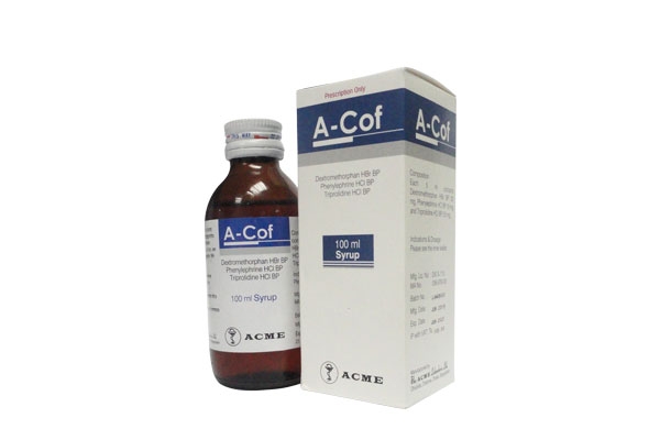 A-Cof : Each 5 ml contains Dextromethorphan HBr 20 mg, Phenylephrine HCl 10 mg & Triprolidine HCl 2.5 mg