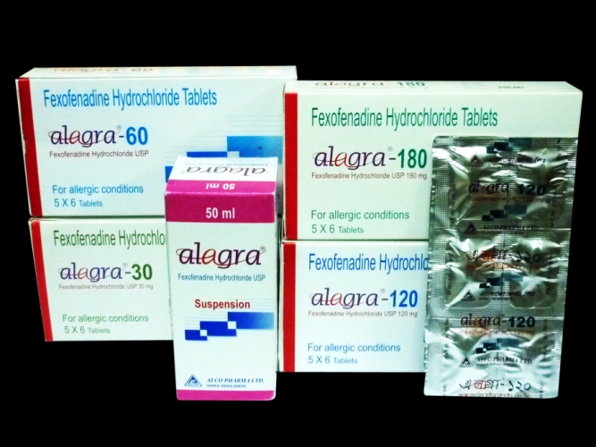 Fexofenadine (Alagra) blocks the H1-receptor & thus prevents activation of cells by Histamine in GI tract, large blood vessels & bronchial smooth muscle. This leads to relief of the allergic symptoms. Unlike most other antihistamines, Fexofenadine does not cross Blood Brain Barrier, and therefore, does not cause drowsiness.