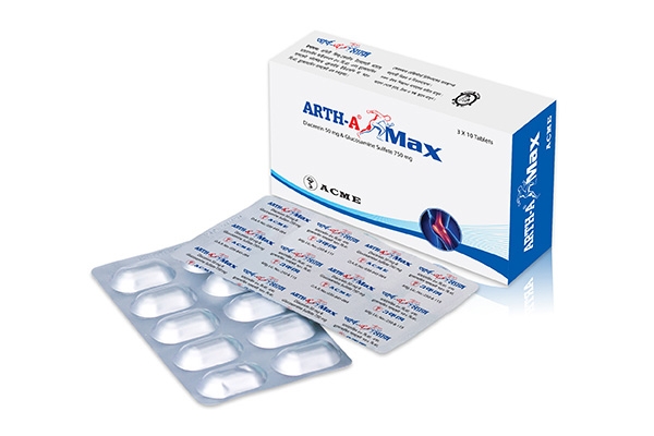 ARTH-A® MAX: Each film-coated tablet contains Diacerein INN 50 mg and Glucosamine Sulfate Potassium Chloride USP equivalent to Glucosamine Sulfate 750 mg.