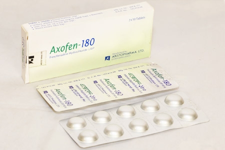 Axofen-180 Tablet: Each film coated tablet contains Fexofenadine Hydrochloride USP 180 mg.