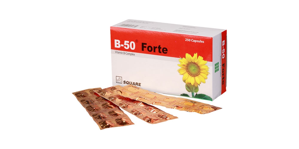 B-50® Forte capsule: Box containing 25x10 capsules in strip pack.