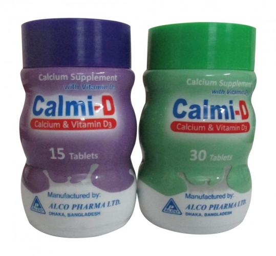 Calmi- D Tablet: Each tablet contains Calcium carbonate USP 1250 mg equivalent to 500 mg of elemental calcium & vitamin D3 BP 200 IU as Cholecalciferol.