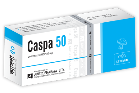 Caspa 50 Tablet: Each film coated tablet contains Voriconazole USP 50 mg.
