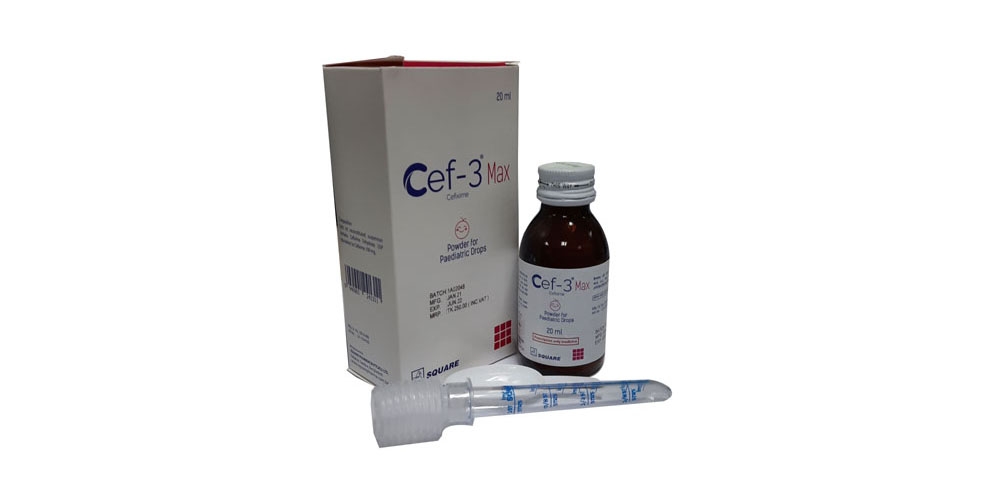 Cef-3® Max Paediatric Drops (20 ml): Bottle containing dry powder for 20 ml Paediatric Drop
