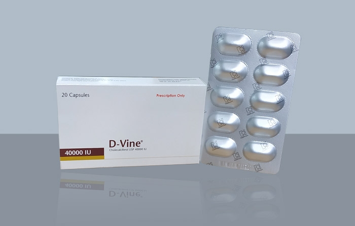 D-Vine® Capsule 40,000 IU: Each box contains 2x10’s capsules in Alu-Alu blister pack.