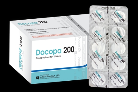 - Docopa 200 Tablet: Each film coated tablet contains Doxophylline INN 200 mg.