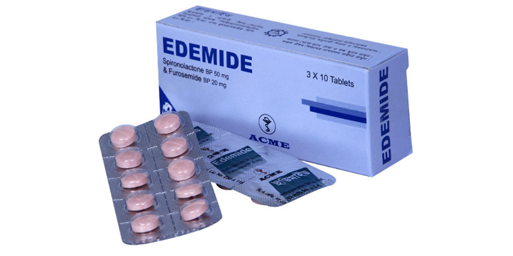 Edemide® : Spironolactone 50 mg and Furosemide 20 mg.