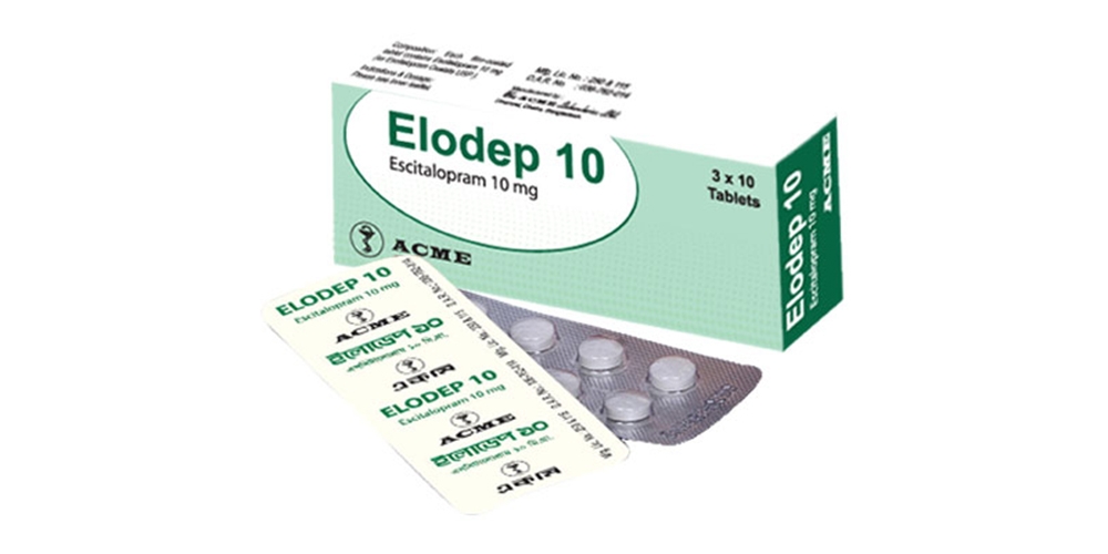 ELODEP 10 Tablet : Each film-coated tablet contains Escitalopram 10 mg (as Escitalopram Oxalate USP).