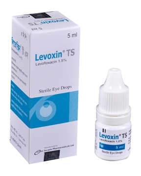 Levoxin TS Eye Drops: Each ml contains Levofloxacin Hemihydrate USP 15.37 mg equivalent to Levofloxacin 15 mg.