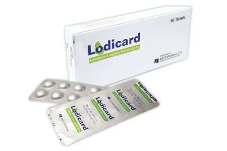 Lodicard Tablet : Each tablet contains Amlodipine besilate BP equivalent to Amlodipine 5 mg and Atenolol BP 50 mg.
