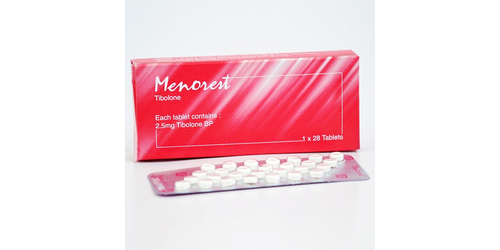 Tibolone is a synthetic steroid that has estrogenic, androgenic and progestagenic properties. After oral administration, Tibolone is rapidly metabolized into three compounds which contribute to the pharmacological effects of Tibolone. Two of these metabolites (the 3α−OH and 3β−OH metabolite) have predominantly estrogenic activity; a third metabolite (δ4-isomer of Tibolone) and the parent compound have predominantly progestagenic and androgenic activities. Tibolone substitutes for the loss of estrogen production in postmenopausal women and alleviates menopausal symptoms. It prevents bone loss following menopause or ovariectomy. It has estrogenic effects on the vagina, on bone and on the thermoregulatory centers in the brain (hot flushes). It improves vaginal dryness and vaginal atrophy. Tibolone has also effects on mood and libido.