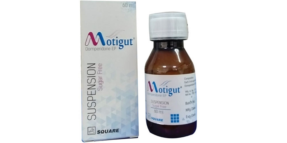 Motigut® suspension: Bottle containing 60 ml suspension.