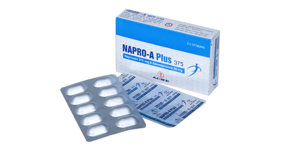 Composition : Napro-A Plus 375 tablet : Naproxen BP 375 mg & Esomeprazole BP 20 mg.
