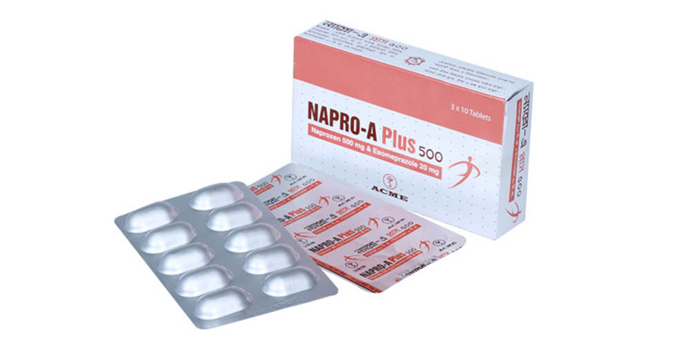 Napro-A Plus 500 tablet : Naproxen BP 500 mg & Esomeprazole BP 20 mg.