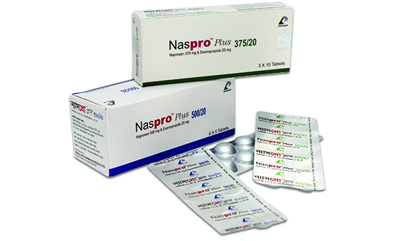 Naspro Plus is indicated for the relief of signs and symptoms of osteoarthritis, rheumatoid arthritis, and ankylosing spondylitis and to decrease the risk of developing gastric ulcers in patients at risk of developing NSAID-associated gastric ulcers. Naspro Plus is not recommended for initial treatment of acute pain because the absorption of naproxen is delayed compared to absorption from other naproxen-containing products. Controlled studies do not extend beyond 6 months.