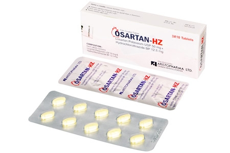 Osartan-HZ Tablet: Each tablet contains Losartan Potassium USP 50 mg and Hydrochlorothiazide BP 12.5 mg.