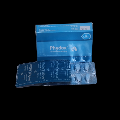 Phydox 400 tablet: Each film coated tablet contains Doxophylline INN 400mg.