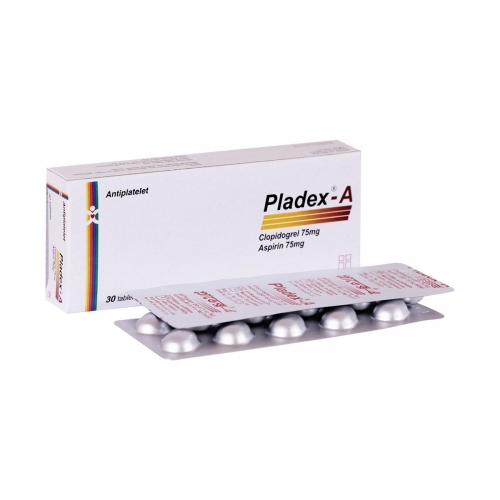 Pladex-A tablet: Light brown, parallel capsule shaped, scored, having engraved on other side, film coated tablet; each tablet contains Clopidogrel Bisulfate equivalent to Clopidogrel INN 75 mg & Aspirin USP 75 mg as coated granules.