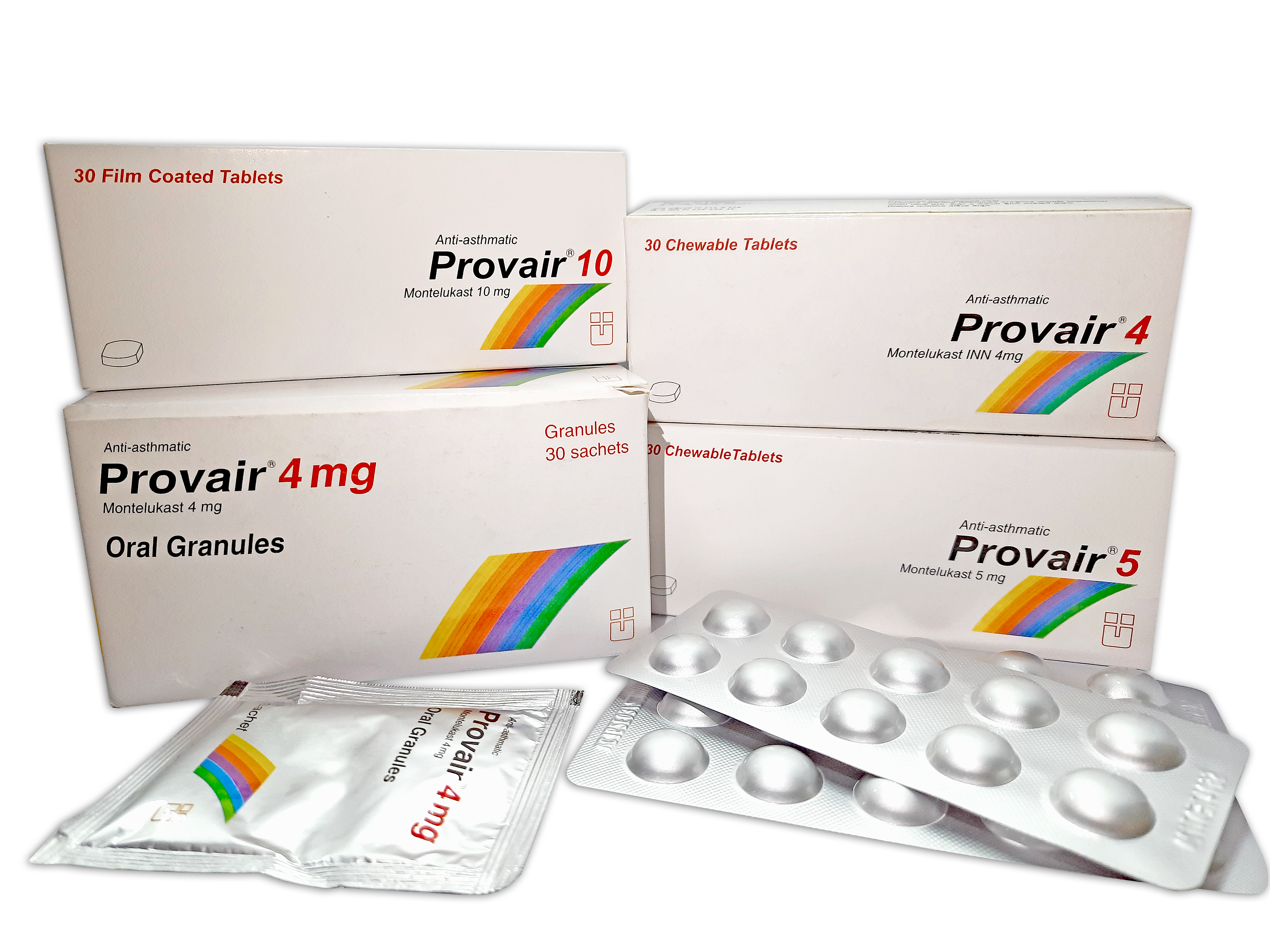 Montelukast (Provair) is indicated for the prophylaxis and chronic treatment of asthma and for the relief of symptoms of seasonal allergic rhinitis in adults and paediatric patients 6 months of age and older.