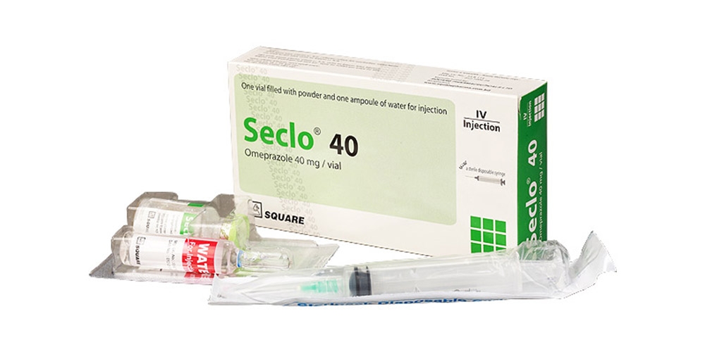Seclo® 40 IV Injection: Box containing one vial of lyophilized Omeprazole 40 mg, one ampule of water for injection BP 10 ml and one sterile disposable syringe (10ml).