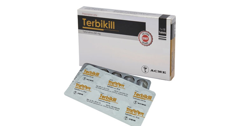 Terbikill Tablet: Each tablet contains Terbinafine 250 mg as Terbinafine Hydrochloride USP.