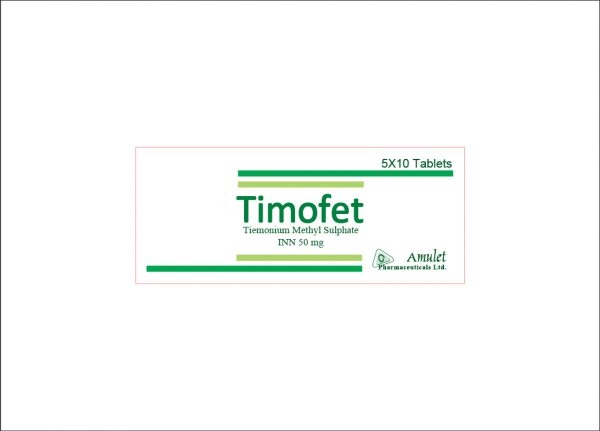 TIMOFET Tablet: Each film coated tablet contains Tiemonium methyl sulphate INN 50 mg.
