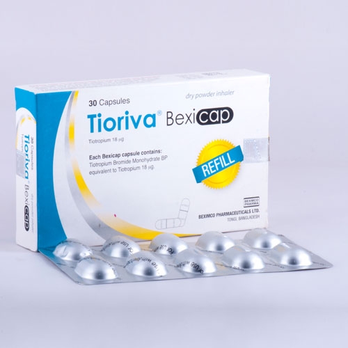 Tioriva® Bexicap (Dry Powder Inhaler) capsule contains Tiotropium Bromide Monohydrate BP as the active ingredient which is a long-acting, antimuscarinic agent, which is often referred to as an anticholinergic. Tioriva® is indicated as maintenance treatment of bronchospasm associated with chronic obstructive pulmonary disease (COPD), including chronic bronchitis and emphysema.