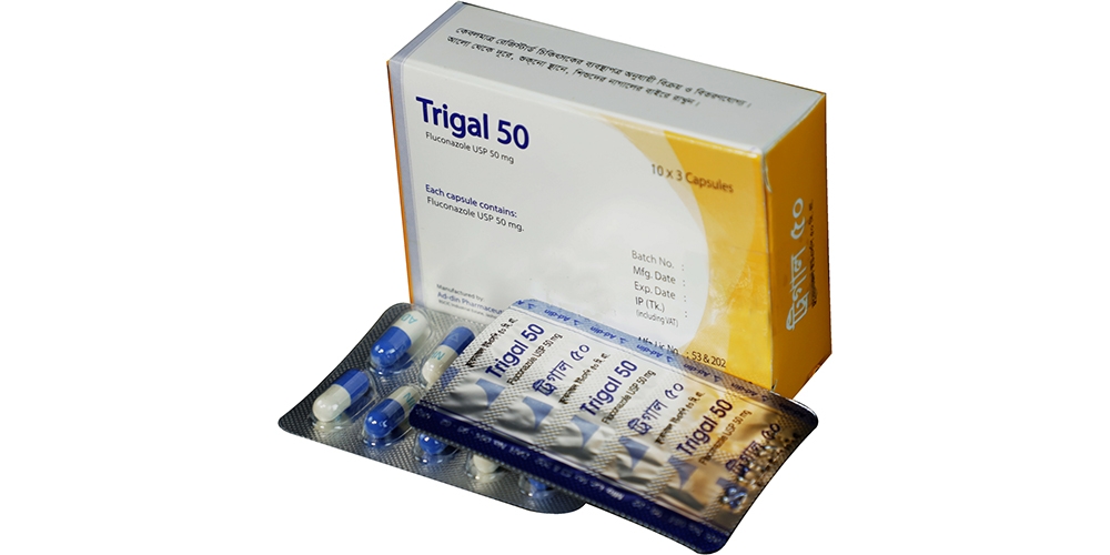 Trigal 50 Capsule: Box containing 10 x 3 capsules in blister pack.
