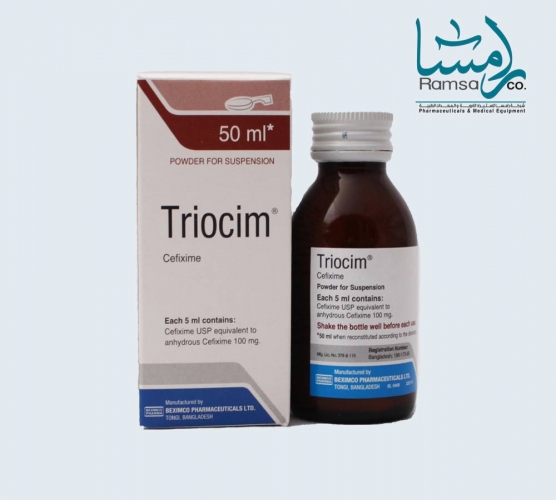 Triocim® (Cefixime) is a 3rd general oral cephalosporin used to treat infections caused by bacteria such as pneumonia, bronchitis, typhoid, gonorrhea, ear, lung, throat, and urinary tract infections. Antibiotics will not work for colds, flu, or other viral infections.