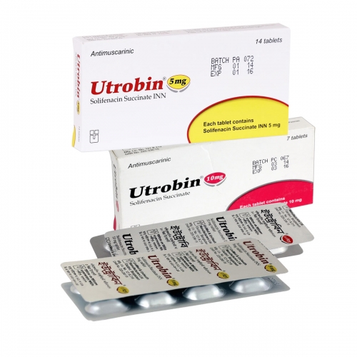 Utrobin 10 mg tablet: Pink, diamond shaped tablet; each film-coated tablet contains Solifenacin Succinate INN 10 mg.