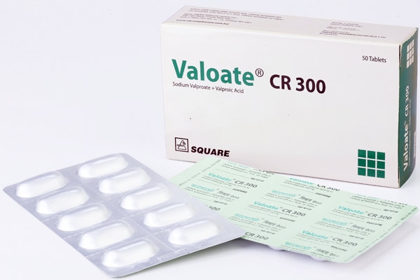 Valoate® CR 300 tablet: Box containing 50 tablets in blister pack.