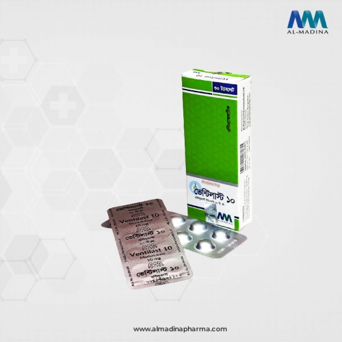 Composition: Ventilast 10 Tablet: Each film coated tablet contains Montelukast Sodium USP 10.40 mg equivalent to Montelukast 10 mg.